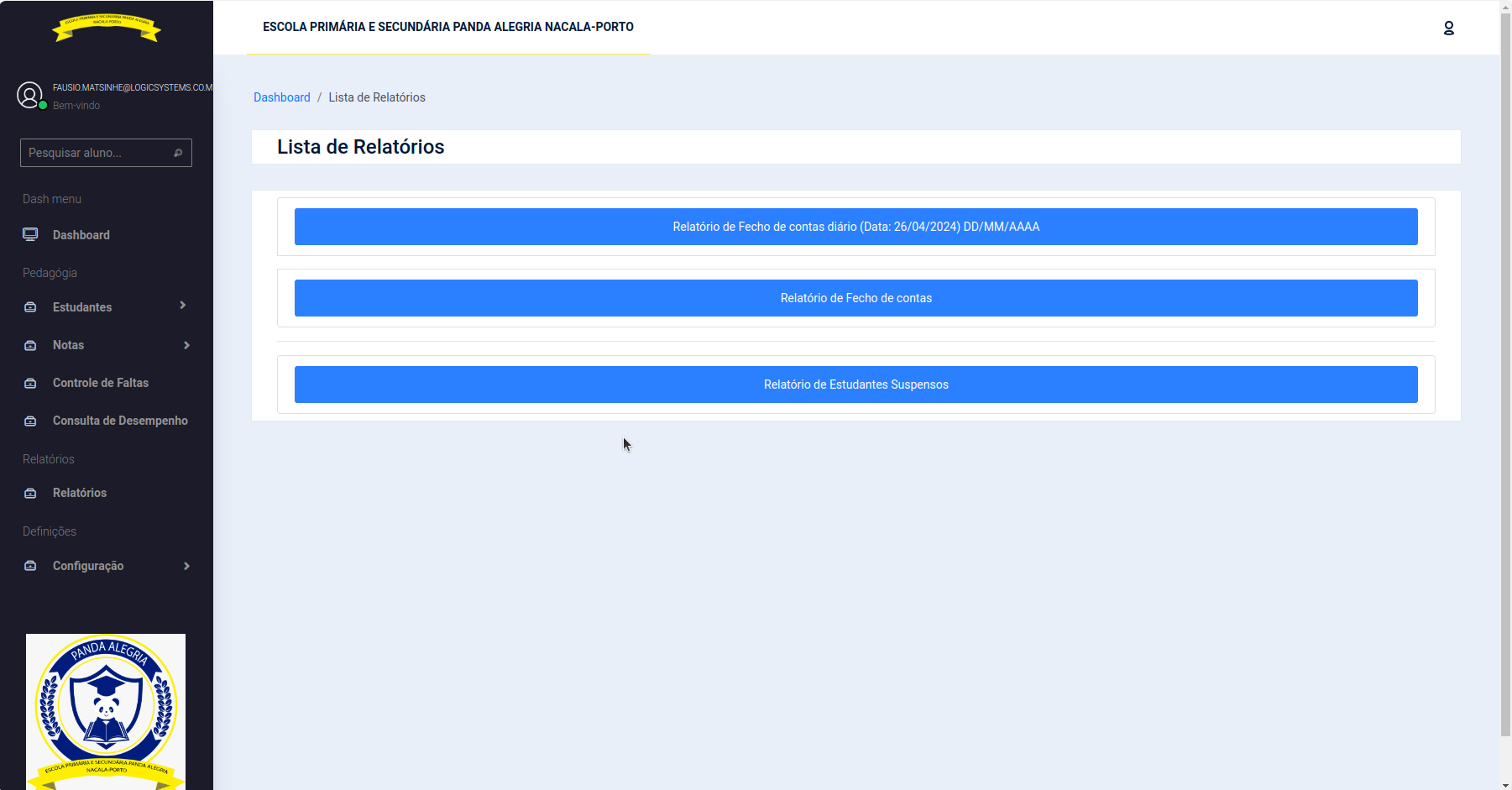 Um sistema escolar abrangente e intuitivo, com gestão eficaz de notas dos estudantes e finanças, facilitando a organização e o acompanhamento académico de forma simplificada.