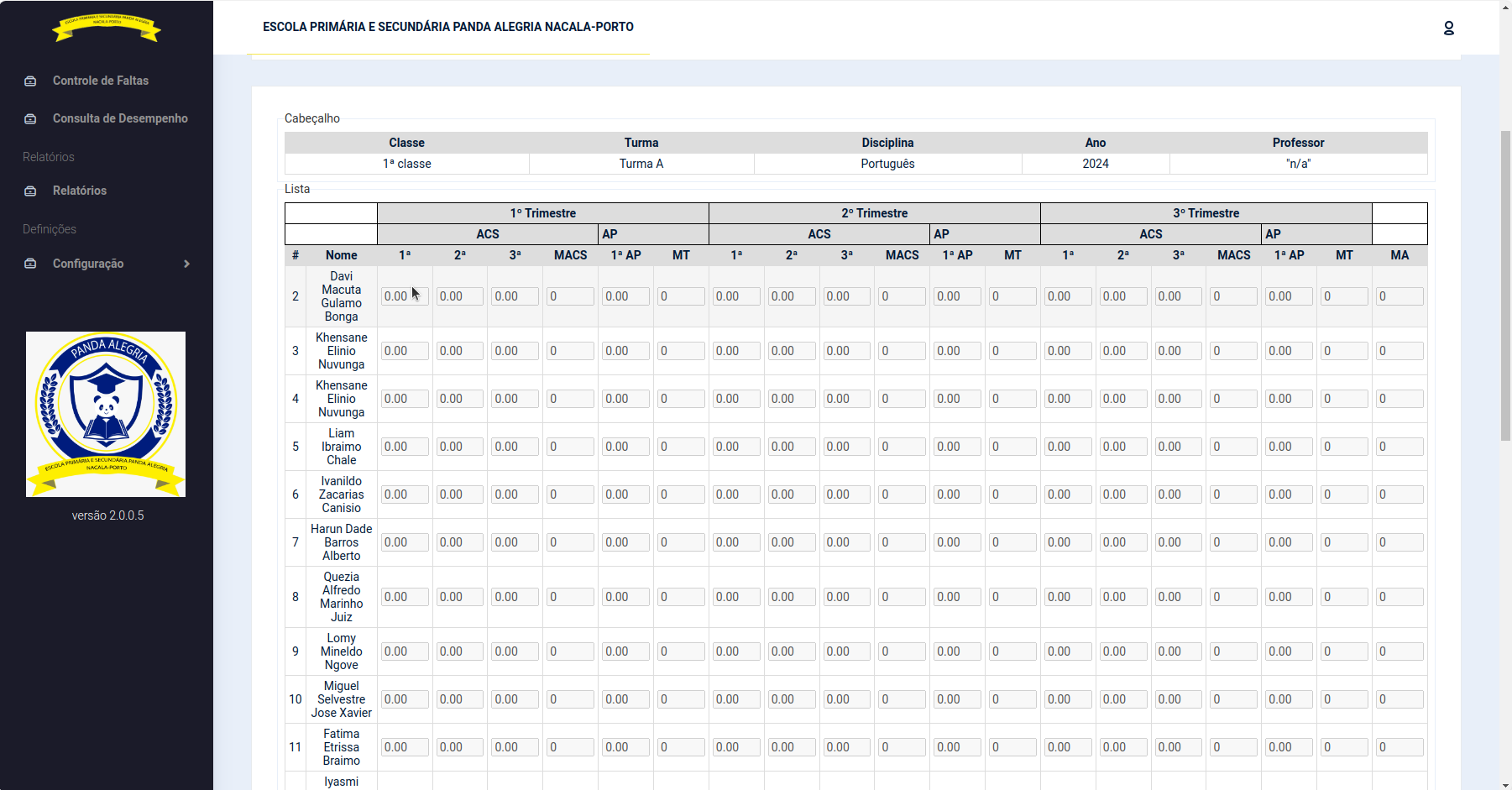 O software permite que os professores registrem e atribuam notas aos alunos com base em avaliações, testes, trabalhos e participação em atividades académicas.